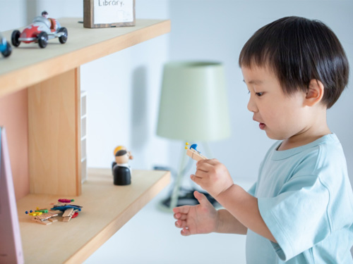 遊び道具の収納や将来における部屋の改築などアドバイスをします。